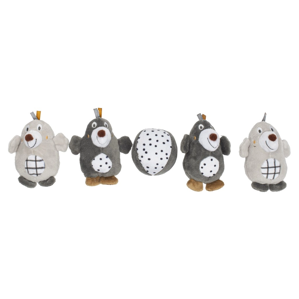 Die Plüschfiguren mit einer Höhe von ca. 12 cm drehen sich gleichmäßig und unterstützen so die Entwicklung der Augen-Hand-Koordination sowie die Konzentration. Das Mobile ist eine großartige Hilfe beim Einschlafen und unterhält das Kind während kurzer Ruhepausen.