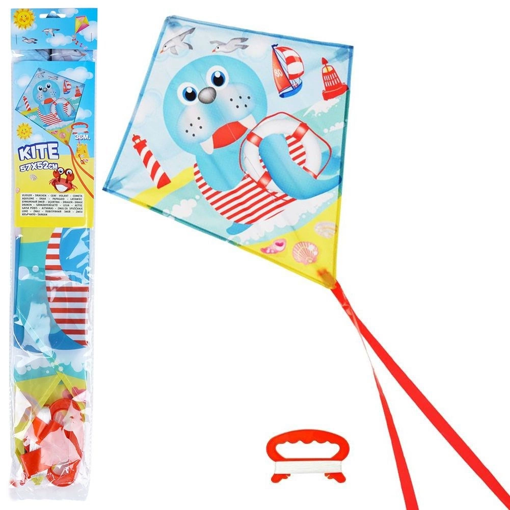 Genießen Sie Outdoor-Spaß mit einem bunten Drachen im niedlichen Seehund-Design. Der Drachen ist leicht, steigt problemlos auf und seine langen Bänder hinterlassen während des Flugs eine attraktive Spur. Dank der robusten Polyester-Konstruktion und des bequemen Haltegriffs ist er ideal für Kinder und Erwachsene.