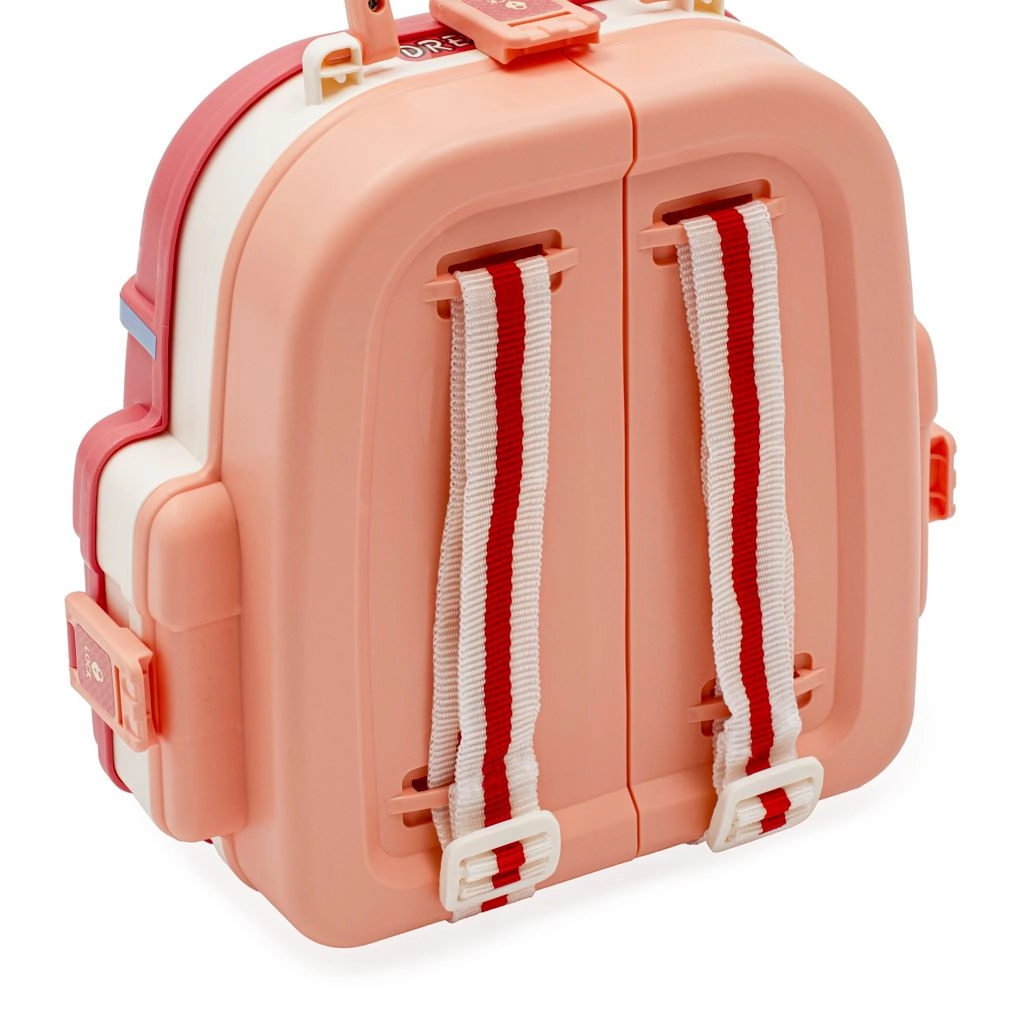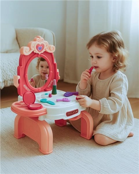 Dieser Mädchen-Kosmetikrucksack unterstützt Rollenspiele, fördert Kreativität und die Feinmotorik. Kinder können sicher „Schminken“ ausprobieren und ihren Mini-Salon überall und jederzeit pflegen.