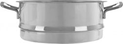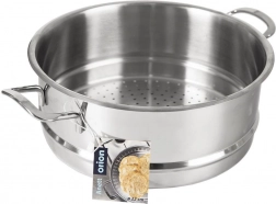 Dank des perforierten Bodens zirkuliert der Dampf gleichmäßig, während der geformte Ring am Rand einen stabilen Sitz auf dem Topf gewährleistet und Dampfaustritt minimiert. Nietbefestigte Griffe erleichtern die sichere Handhabung. Der Einsatz ist mit Töpfen von 24 cm Durchmesser kompatibel und kann mühelos in der Spülmaschine gereinigt werden.