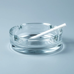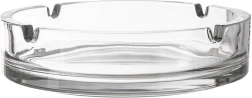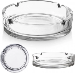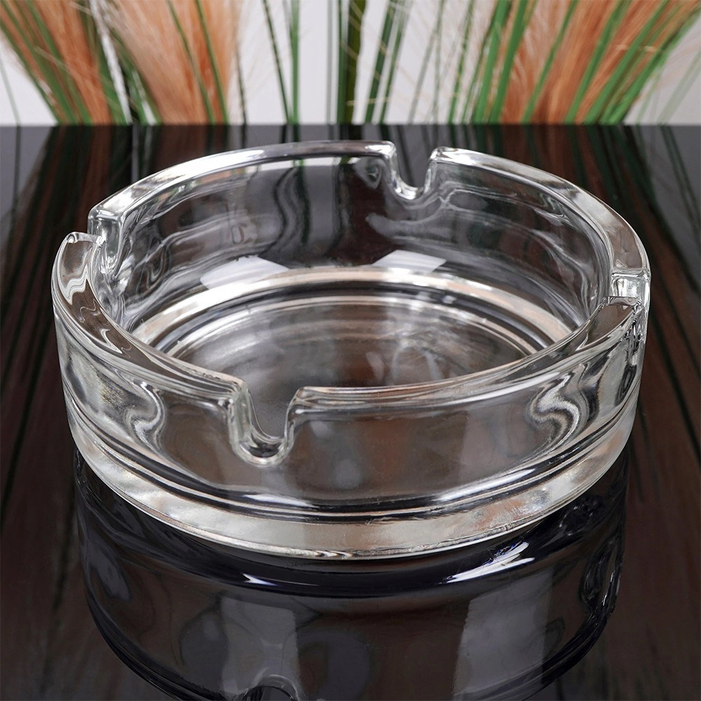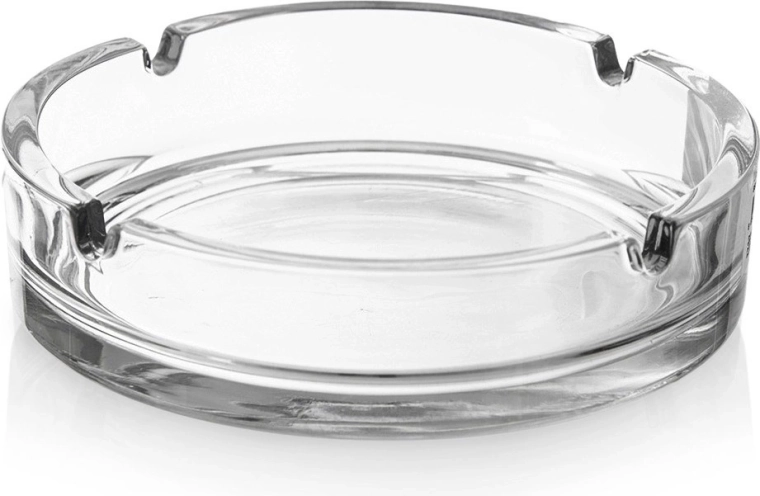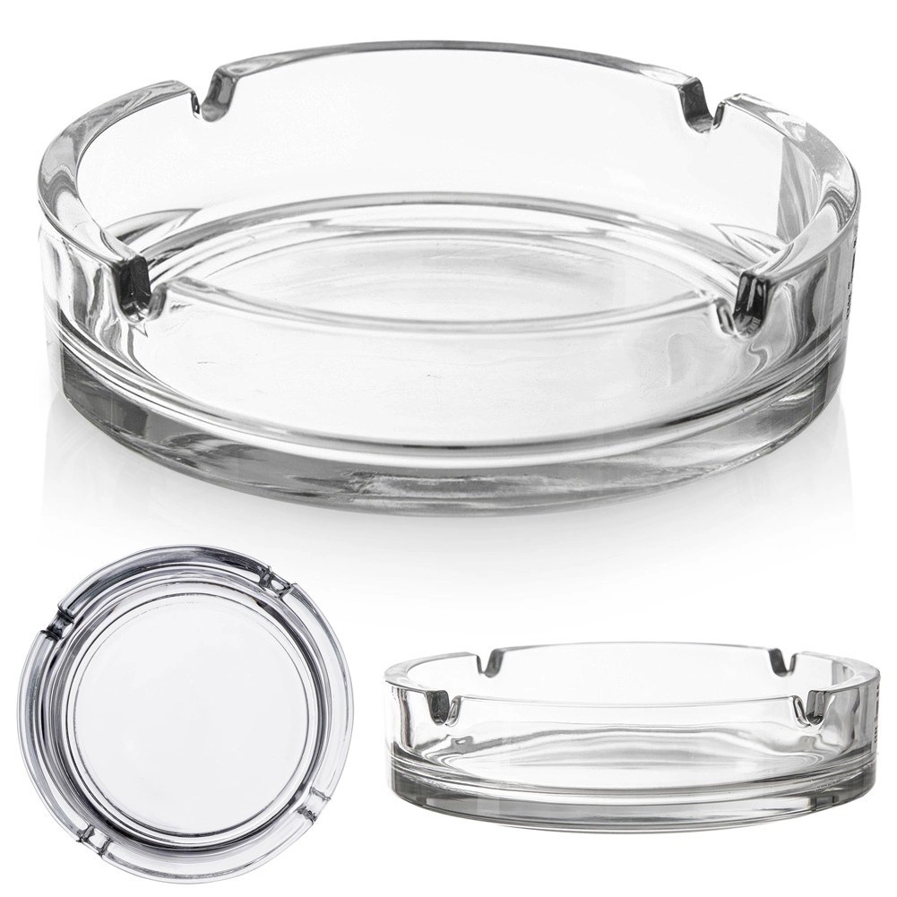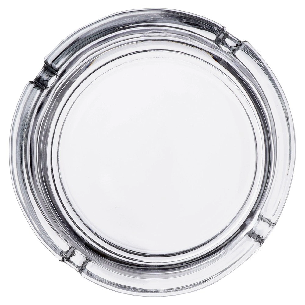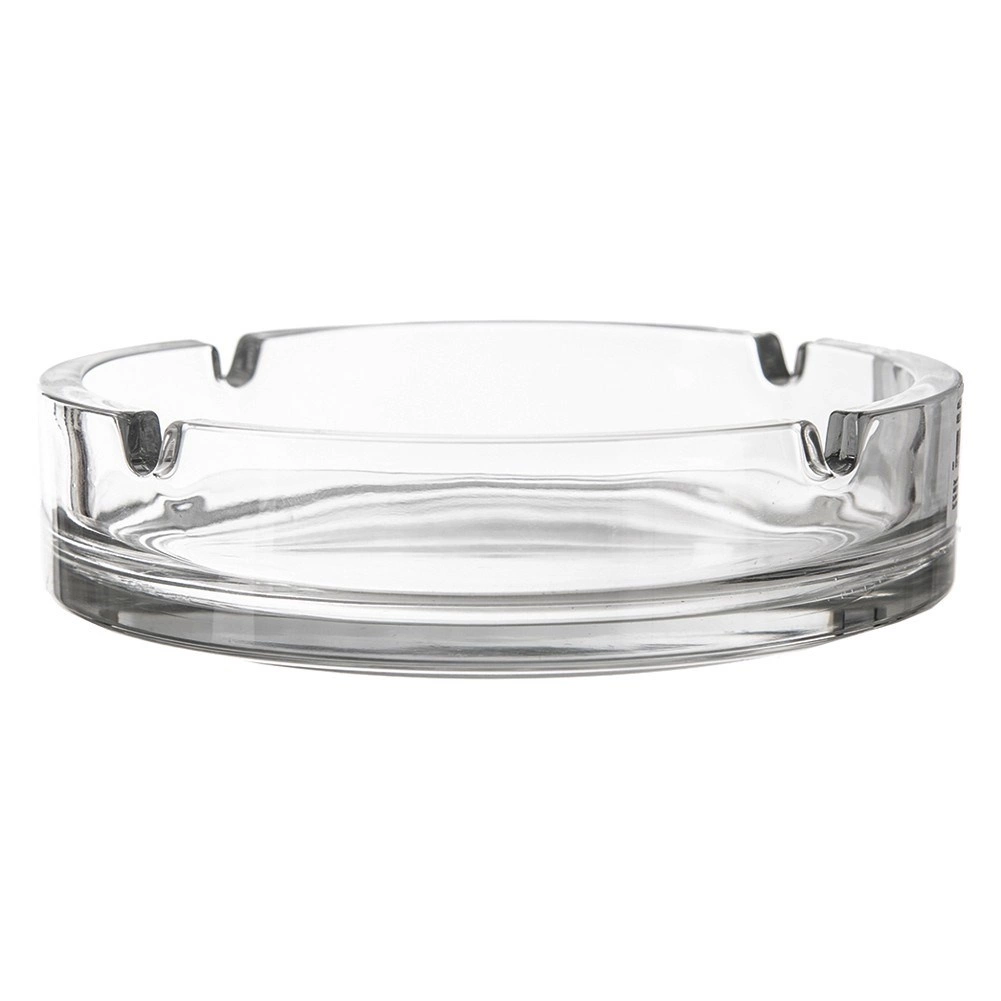 Praktischer Glasaschenbecher mit 10 cm Durchmesser im klassischen Design für den täglichen Gebrauch zu Hause und in gewerblichen Räumen. Dank vier Einkerbungen ermöglicht er das bequeme Ablegen von Zigaretten, ist aus hochwertigem Klarglas gefertigt und fügt sich mit seinem universellen Look in jedes Interieur und Exterieur ein.