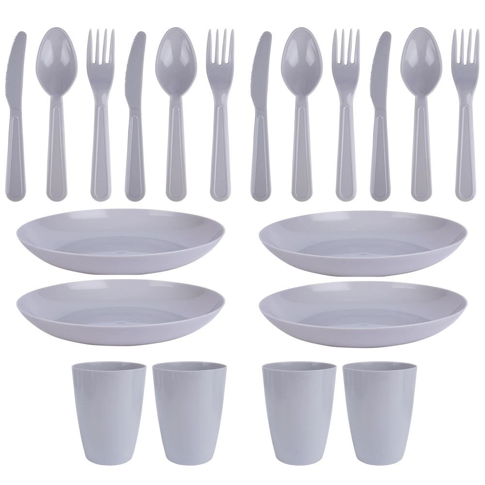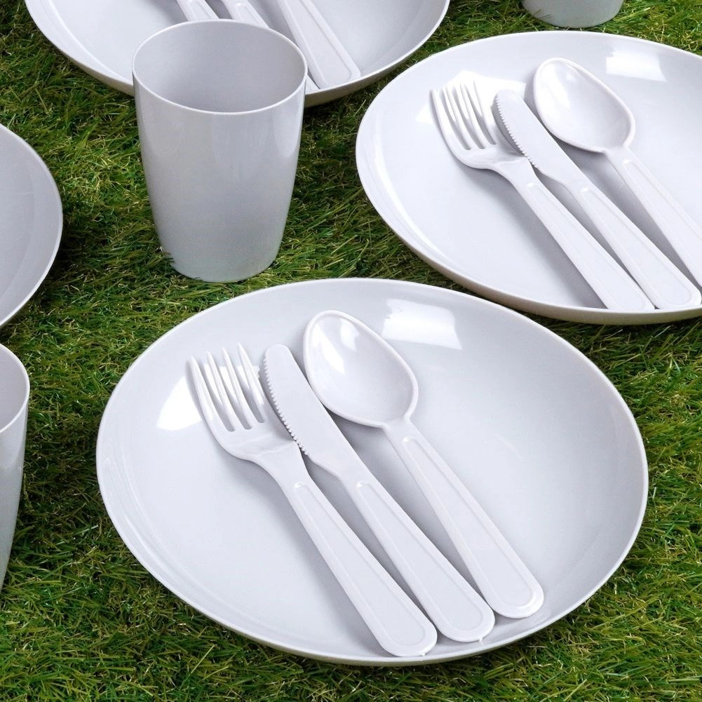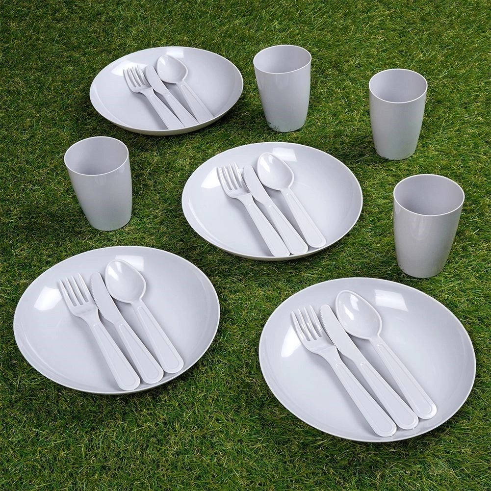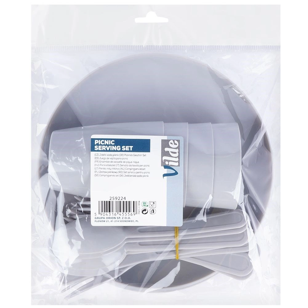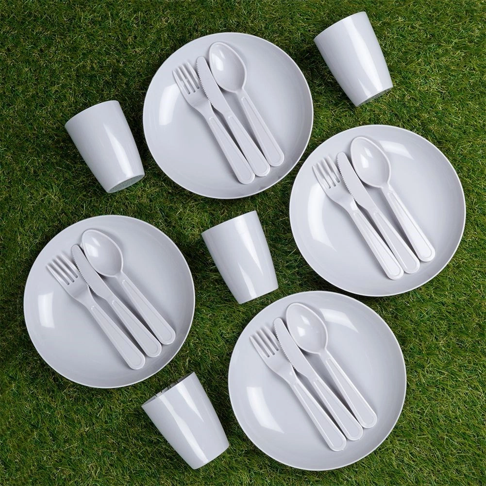 Genießen Sie unbeschwertes Essen im Freien. Dieses praktische Set enthält alles, was Sie zum Servieren von Getränken, Hauptgerichten und Snacks benötigen. Dank des geringen Gewichts und des widerstandsfähigen Materials ist es perfekt für Picknicks, Camping und den Garten. Geeignet für Erwachsene und Kinder.