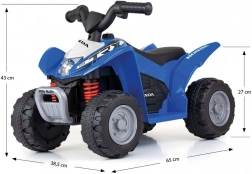 Dank der einfachen Bedienung – durch Drücken des Gaspedals – fährt das Quad sanft an, das Frontlicht leuchtet auf und die Hupe sorgt für zusätzlichen Spaß. Das Fahren fördert Motorik, Raumorientierung und manuelle Geschicklichkeit. Akku und Ladegerät sind im Lieferumfang enthalten.