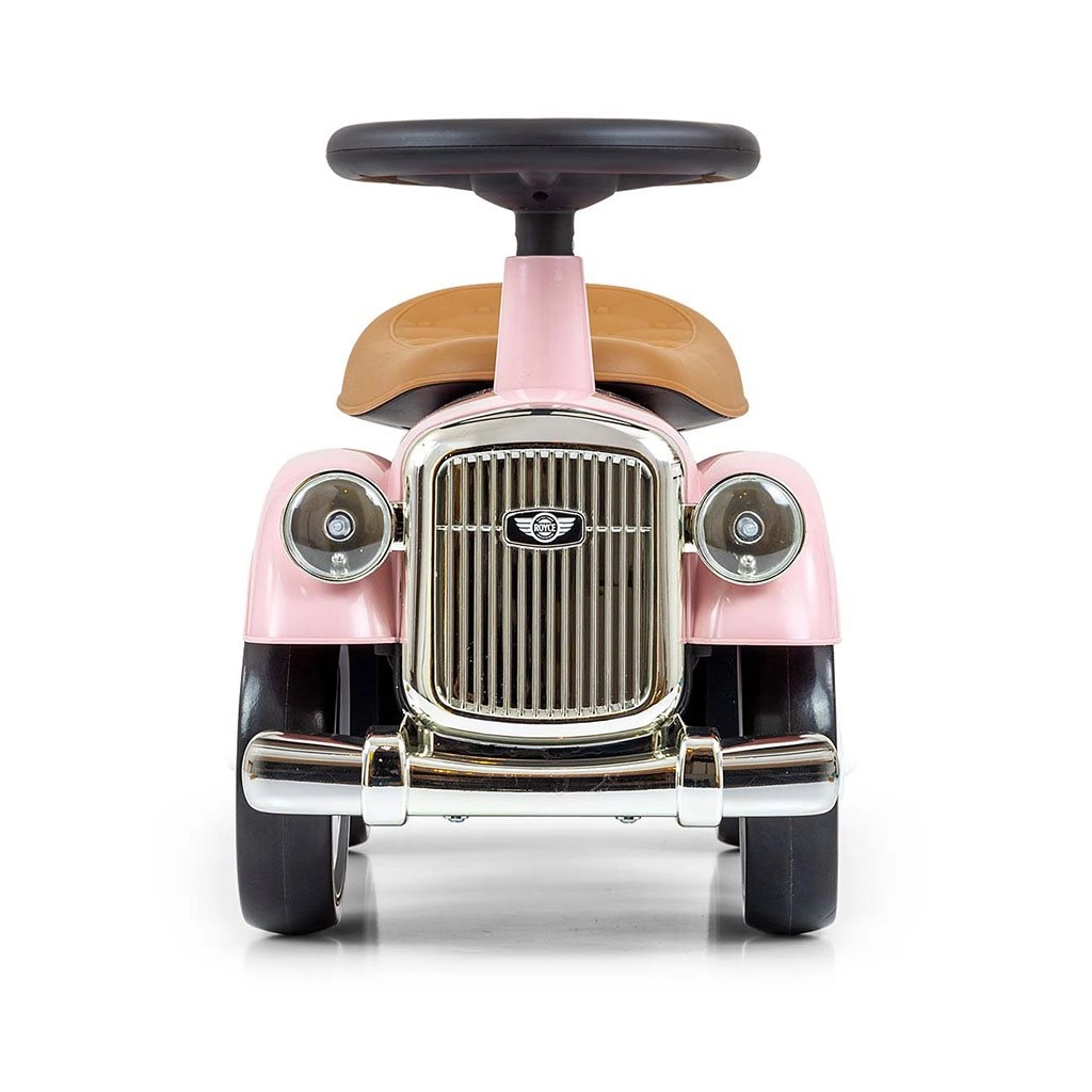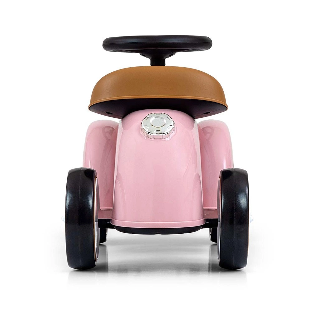 Das niedliche Laufrad im Retro-Stil verbindet ikonisches Aussehen mit durchdachten Details: verchromte Elemente, ROYCE-Emblem und ein bequem geformter Sitz in Braun. Dank des leichten Kunststoff-Chassis lässt es sich leicht tragen und Kinder bewegen es spielend durch Abstoßen mit den Füßen.