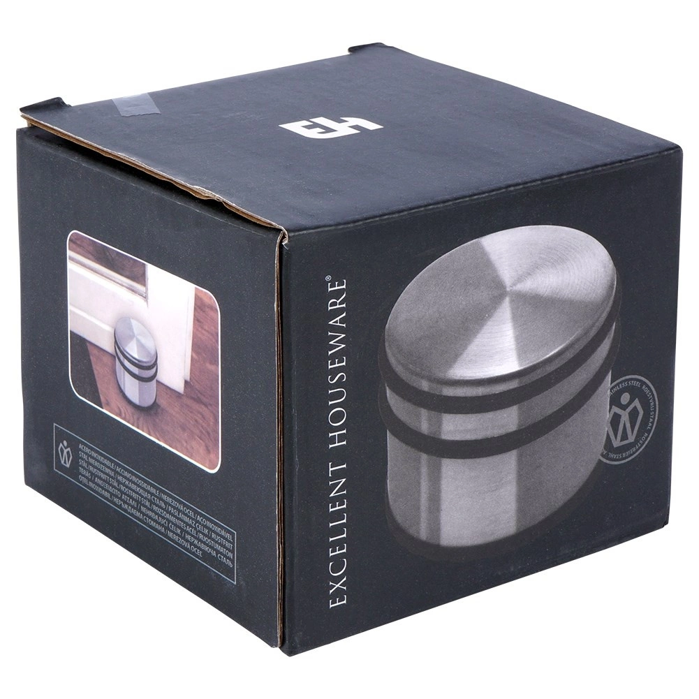 Der robuste Türstopper mit modernem Edelstahl-Look verhindert, dass Türen ungewollt zufallen oder gegen Wände und Möbel schlagen. Die massive Konstruktion und die rutschfeste Gummibasis sorgen für Stabilität auf den meisten Bodenarten.