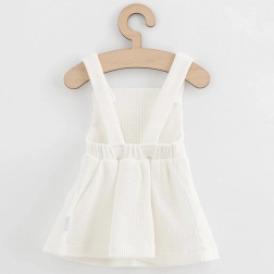 Dieses Mädchen-Latzkleid NEW BABY Laura besteht aus weicher, atmungsaktiver 100 % Baumwolle, die die empfindliche Kinderhaut sanft umschmeichelt. Das dezente Weiß und der strukturierte Strick verleihen dem Modell einen eleganten Look, der zu Hause wie auch zu Besuch gut zur Geltung kommt.