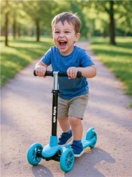 Die höhenverstellbare T-Stange mit bequemen Griffen passt sich der Größe des Kindes an und verlängert die Nutzungsdauer des Rollers.