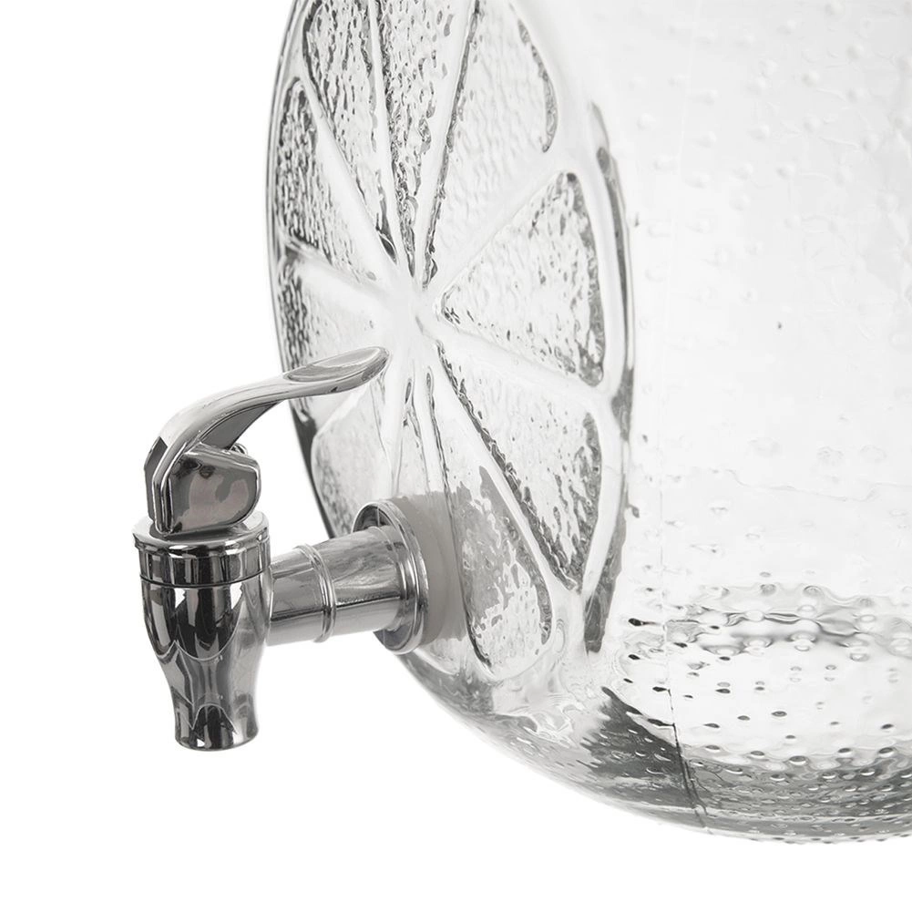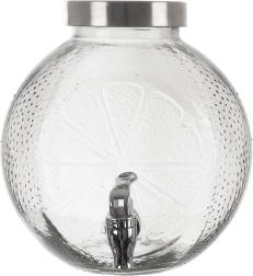 Der großvolumige Getränkespender aus Glas mit Zapfhahn serviert elegant Wasser mit Früchten, Limonade oder erfrischenden Punsch. Dickes, hochwertiges Glas mit Relief von Zitrusscheiben ist lebensmittelecht und sorgt für eine attraktive Optik und Stabilität. Der Schraubdeckel aus Metall schützt den Inhalt vor Schmutz und Insekten, während der Metallzapfhahn ein komfortables Zapfen ohne Verschütten ermöglicht.