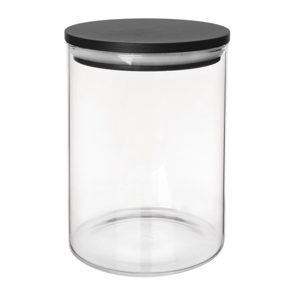 Die Dose besteht aus Borosilikatglas, das beständig gegen Temperaturschwankungen ist und dem täglichen Einsatz in der Küche standhält. Der schwarze Deckel mit elegantem Look fügt sich perfekt in moderne Haushalte ein und sorgt für Ordnung in Ihrer Speisekammer.