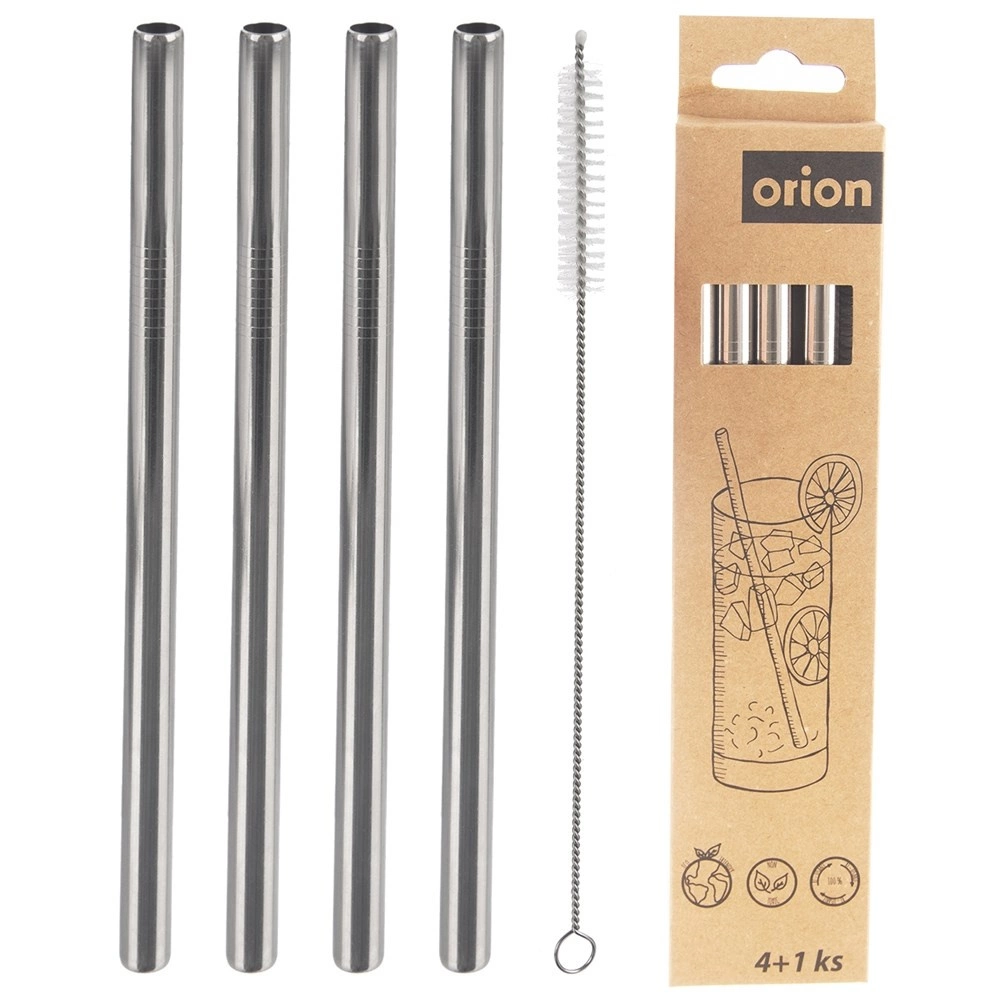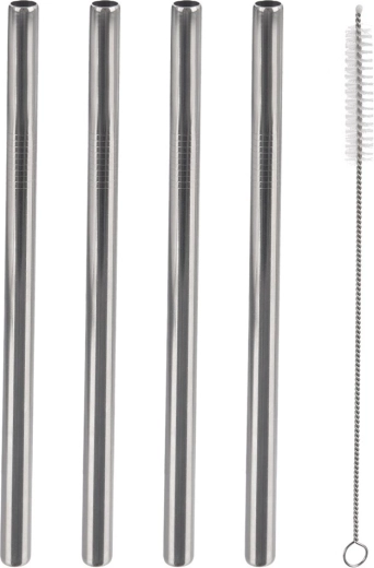 4× Edelstahl-Trinkhalm, 1× Reinigungsbürste