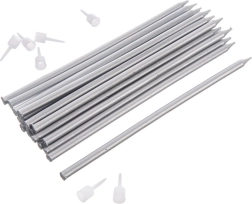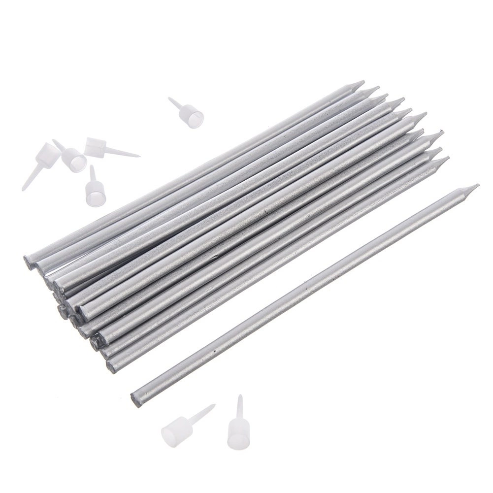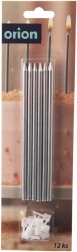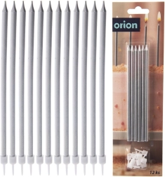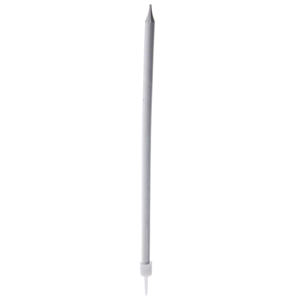 Schaffen Sie einen unvergesslichen Moment beim Auspusten der Wünsche mit dem Set langer silberner Kerzen. Dank der Höhe von 14,5 cm kommen sie auch auf größeren Torten schön zur Geltung, ohne die Dekoration zu verdecken. Praktische weiße Sockel sorgen für eine sichere und feste Platzierung der Kerzen im Kuchenboden.