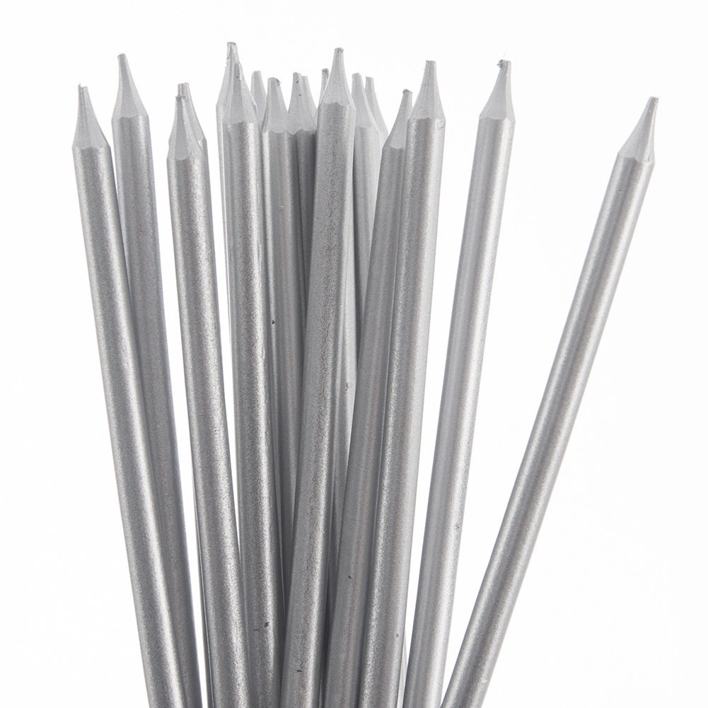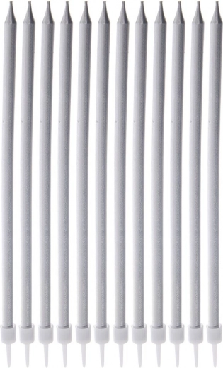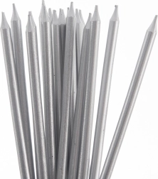 Silberne Kerzen sind eine universelle Wahl für Geburtstage, Jubiläen und Feiertage. Das Wachs mit metallischem Glanz wirkt modern und festlich und lässt sich leicht mit jedem Dekorationsstil kombinieren.