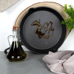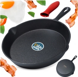 Pflegetipp: Nach jedem Gebrauch reinigen, vollständig trocknen und leicht einölen. Regelmäßiges Einölen schützt das Gusseisen vor Korrosion und sorgt für eine lange Lebensdauer. Die Pfanne hat keine Antihaftbeschichtung.
