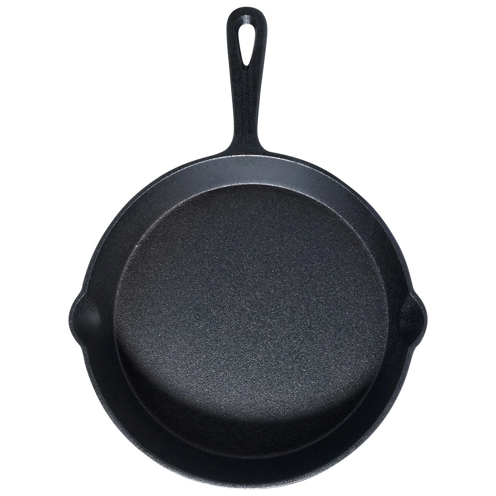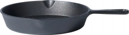 Diese Pfanne aus massivem Gusseisen in Schwarz ist besonders robust und langlebig. Gusseisen verteilt und speichert Wärme hervorragend, sodass Fleisch, Gemüse und Kartoffeln perfekt gegart werden und Speisen länger warm bleiben. Zwei seitliche Ausgießnasen erleichtern das Abgießen von Säften und Soßen ohne Kleckern.