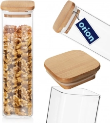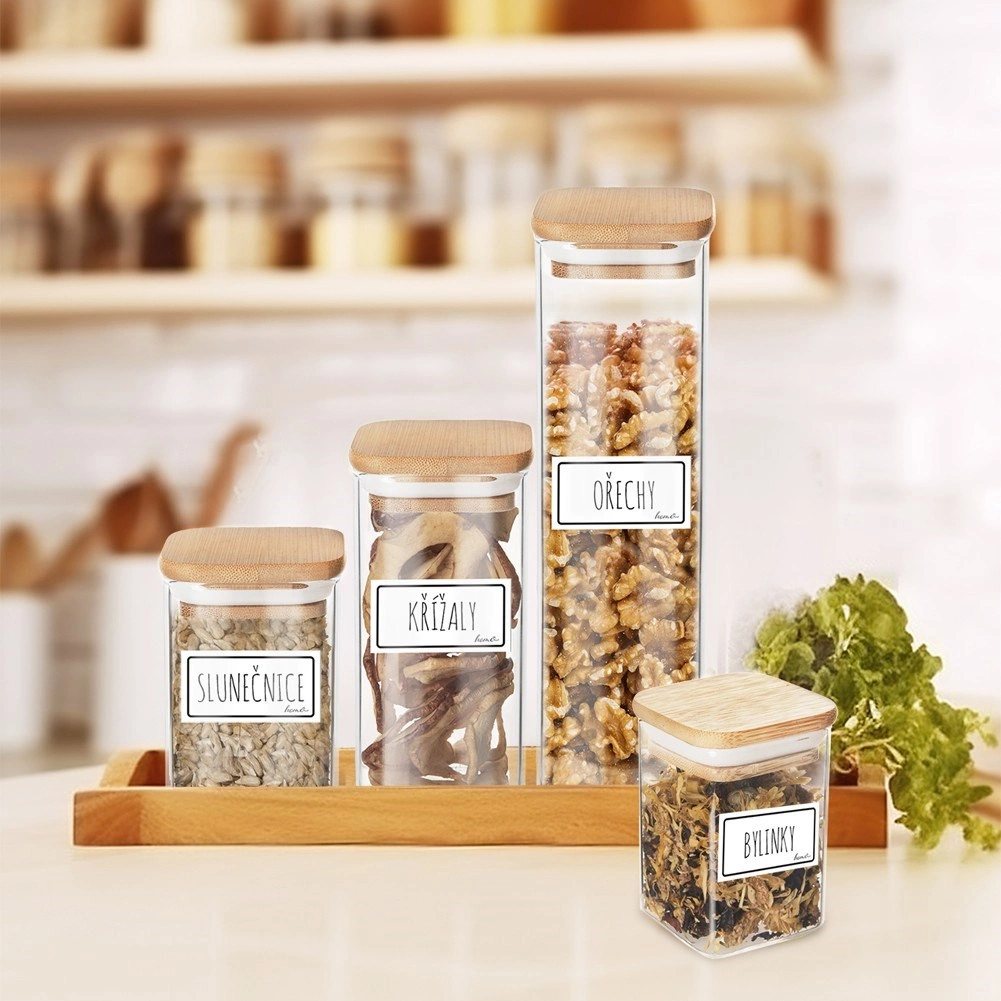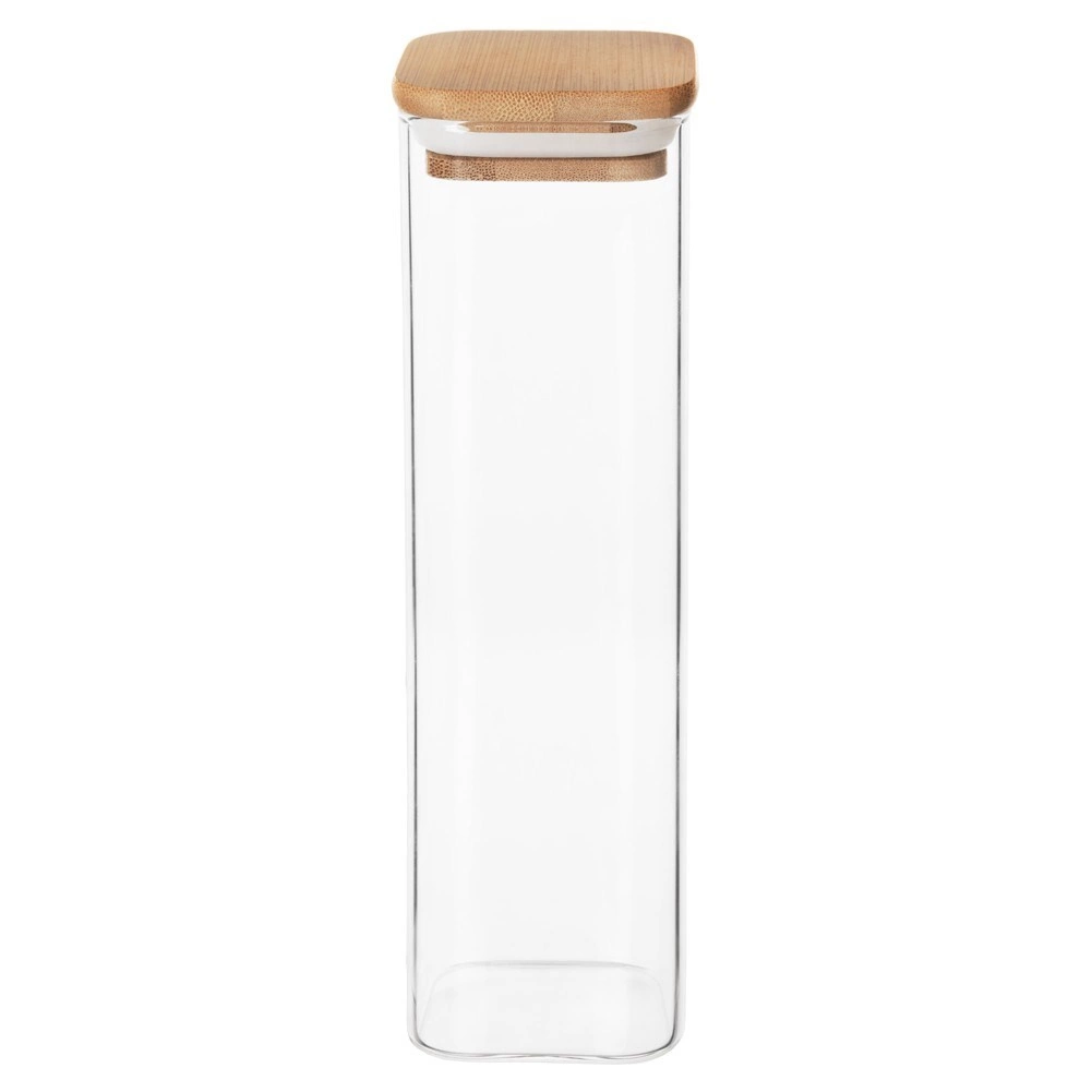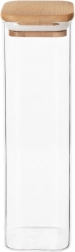 Bewahren Sie Ordnung und Frische mit der praktischen Glasdose mit Bambusdeckel und Silikondichtung. Das klare Borosilikatglas ist beständig gegenüber Temperaturschwankungen und ermöglicht Ihnen eine sofortige Kontrolle des Inhalts. Das minimalistische Design und das natürliche Bambus machen sie zu einem eleganten Küchenaccessoire.