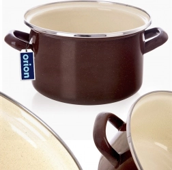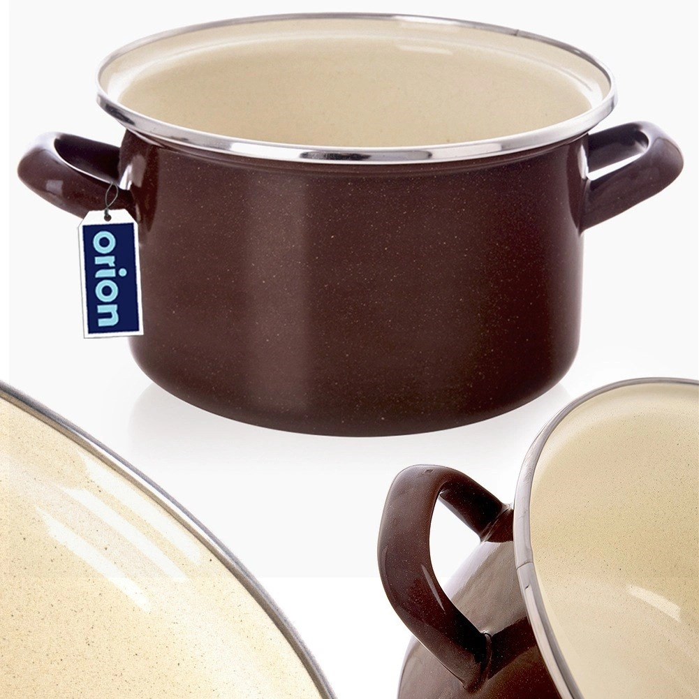Der emaillierte Topf BROWN im Retro-Stil vereint zeitloses Design und Praktikabilität für den Alltag. Dank gleichmäßiger Wärmeverteilung eignet er sich hervorragend für Suppen, Saucen und Beilagen. Emaille ist hygienisch, nimmt keine Gerüche oder Geschmäcker an und ist auch für Allergiker sicher.