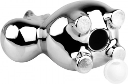 Die hochglänzende, chromähnliche Oberfläche macht die Spardose zu einer effektvollen Dekoration, die sowohl im Regal als auch auf dem Schreibtisch hervorsticht.