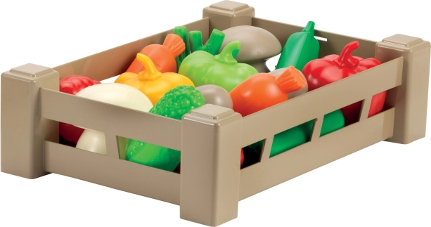 Diese realistische Kunststoffkiste ist mit bunten Nachbildungen von Obst und Gemüse gefüllt, die die kindliche Vorstellungskraft anregen und die Feinmotorik fördern. Ideal für Kinderküchen, Spielbereiche und Kindergärten.