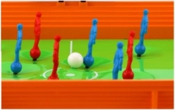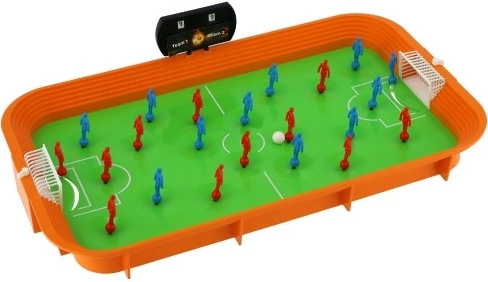 Leichte und robuste Konstruktion aus Kunststoff, zwei Tore und farbige Teams. Ideal fürs Kinderzimmer, Wohnzimmer und für unterwegs.