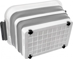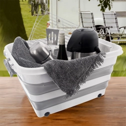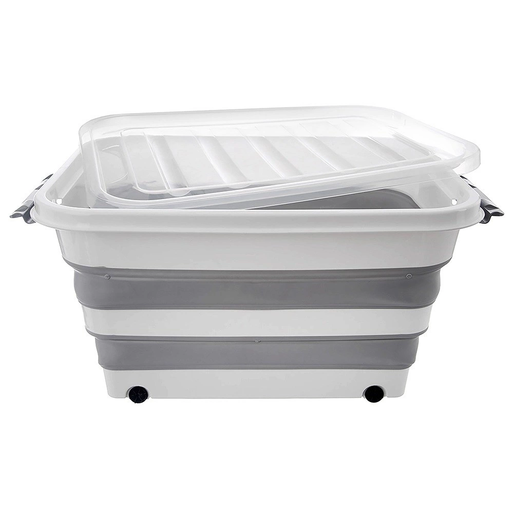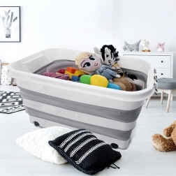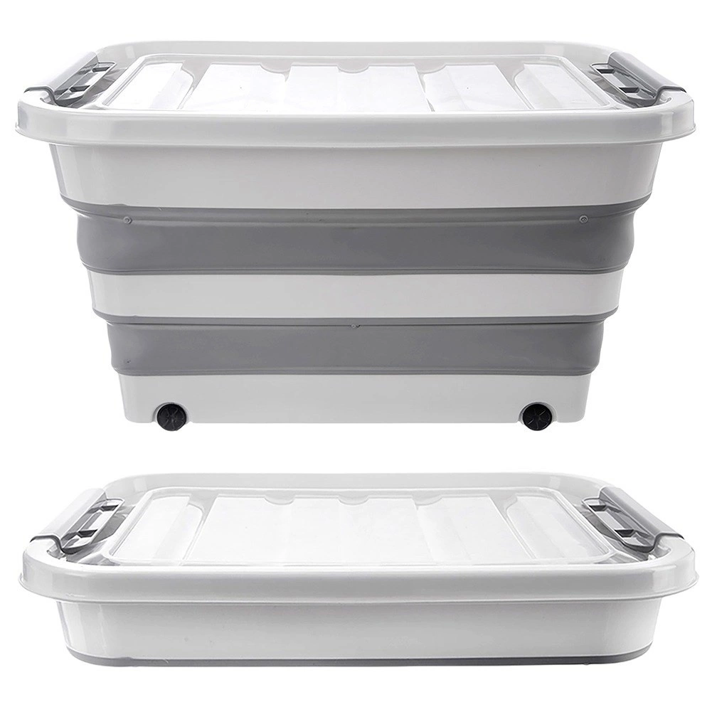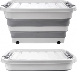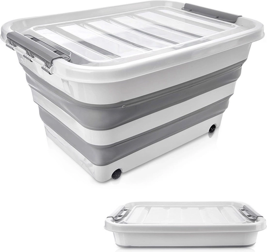 Die Box besteht aus robustem TPR-Gummi in Kombination mit hochwertigem Kunststoff und hält so dem täglichen Gebrauch im Haushalt, in der Werkstatt und im Garten stand. Die faltbare Konstruktion ermöglicht ein Zusammenlegen auf eine Höhe von ca. 9,5 cm, wodurch Sie Platz sparen, wenn sie gerade nicht verwendet wird. Ideal zur Aufbewahrung von Bettwäsche, Spielzeug, Kleidung, Textilien, Büchern und weiteren Haushaltsutensilien.