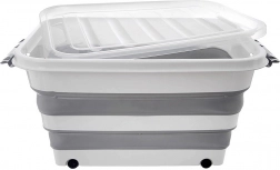 Die faltbare Aufbewahrungsbox KEMP mit 30 Liter Volumen hilft Ihnen, in jedem Raum Ordnung zu halten. Sie verfügt über ein transparentes Deckel mit zwei stabilen Clips, das den Inhalt vor Staub schützt und eine schnelle visuelle Kontrolle ermöglicht. Dank der Rollen am Boden schieben Sie die Box mühelos unter das Bett, in den Schrank oder von Raum zu Raum.