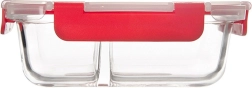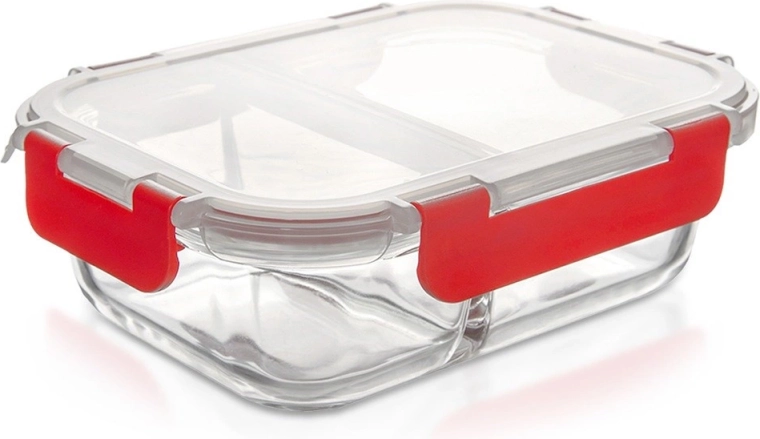 Aus hochwertigem Borosilikatglas mit Temperaturbeständigkeit von -20 °C bis 300 °C: geeignet für die Spülmaschine, Mikrowelle (ohne Deckel), den Backofen (ohne Deckel) und das Gefrierfach. Zwei Kammern trennen Hauptgericht von Salat, Saucen oder Snacks – ohne Geschmacksvermischung dank Dichtung auch zwischen den Trennwänden.