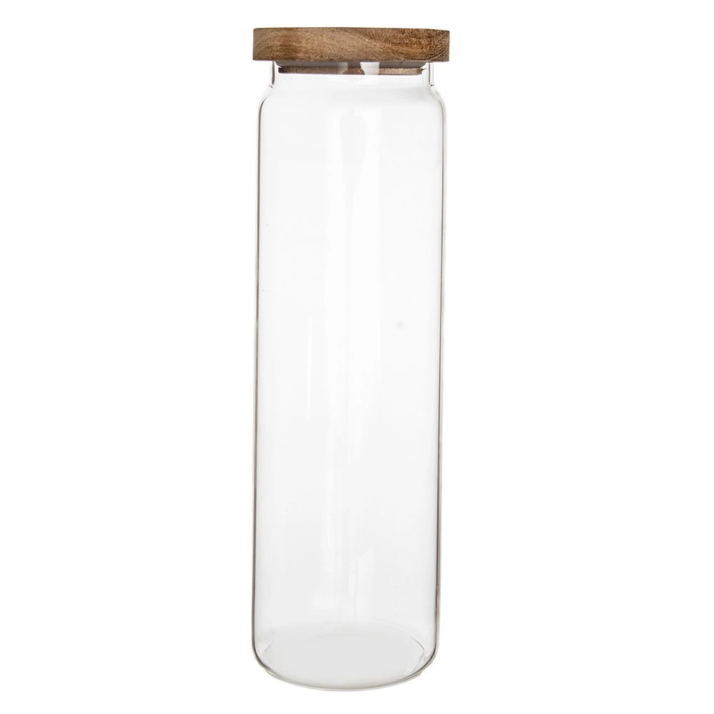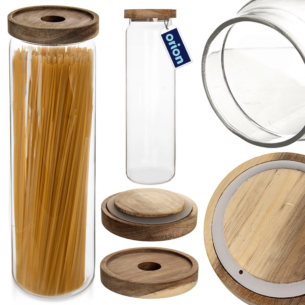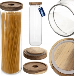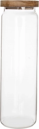 Halten Sie Ordnung in Speisekammer und auf der Arbeitsfläche und präsentieren Sie Ihre Lieblingszutaten stilvoll. Die hohe Glasdose mit natürlichem Holzdeckel und Silikondichtung sorgt für eine sichere und langfristige Lagerung trockener Lebensmittel ohne Aromaverlust. Das transparente Borosilikatglas ist widerstandsfähig gegen Temperaturschwankungen und zeigt den Inhalt attraktiv.