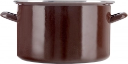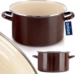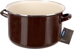 Der emaillierte Topf im Retro-Stil überzeugt durch seine robuste Verarbeitung, sein großes Volumen und den vielseitigen Einsatz in der Küche. Die braune Außenseite, das cremefarbene Innere und der Edelstahlrand verleihen dem Kochgeschirr einen eleganten Look. Die Emaille ist gesundheitsunbedenklich und auch für Allergiker geeignet.