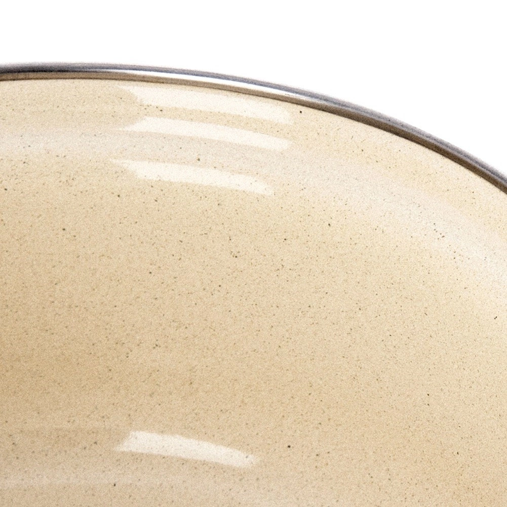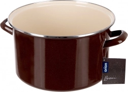 Praktischer und stilvoller Emaille-Topf im Retro-Design mit großzügigem Volumen von 11,5 l, 32 cm Durchmesser und 17 cm Höhe – perfekt für Suppen, Saucen und Schmorgerichte. Der braune Außensmalt mit beiger Innenbeschichtung und Edelstahlrand sorgt für Langlebigkeit und einfache Reinigung, während zwei stabile Griffe einen sicheren Halt bei der Handhabung bieten.