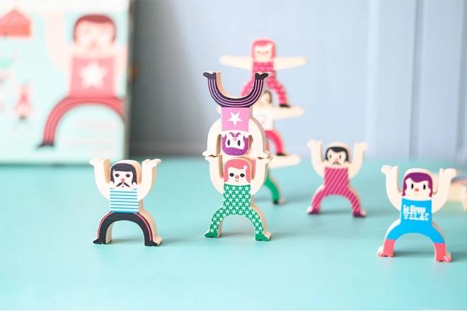 Bauen Sie Ihren eigenen Akrobaten-Turm und testen Sie Geschicklichkeit und Fantasie. Die bunten Holzfiguren lassen sich zu vielen stabilen wie auch wagemutigen Positionen stapeln – ideal für gemeinsames Spielen und das Erlernen von Balance.