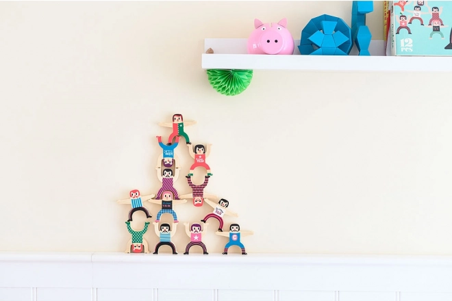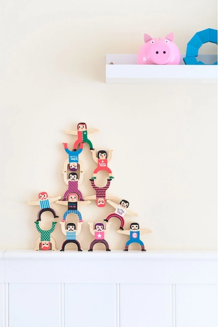 Beim Stapeln der Akrobaten trainieren Kinder auf natürliche Weise Koordination, Geduld und logisches Denken. Ideales Spiel für Vorschul- und Schulkinder.