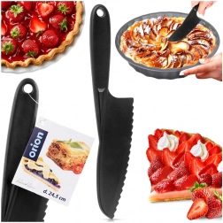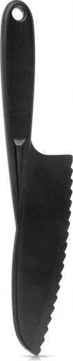 Dieses gezahnte Tortenmesser aus der BLACKLINE-Kollektion ist ideal zum Schneiden von Biskuitböden sowie zum Portionieren von Torten und Kuchen. Die leichte und strapazierfähige Kunststoffkonstruktion in Schwarz sorgt für lange Haltbarkeit und komfortable tägliche Anwendung.