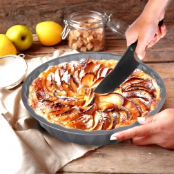 Die scharfe, gezahnte Klinge meistert zarte und brüchige Teige, ohne sie zu zerdrücken, während der ergonomische Griff sicheren Halt und Kontrolle beim Schnitt ermöglicht. Das Messer lässt sich leicht reinigen und ist spülmaschinengeeignet – das spart Zeit und Aufwand.