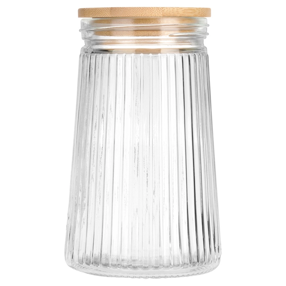 Praktische und designstarke Vorratsdose für den täglichen Einsatz in der Küche. Borosilikatglas widersteht Temperaturschwankungen, und die gerippte Oberfläche sorgt für einen modernen Look und besseren Halt. Der Bambusdeckel mit Silikondichtung verschließt den Behälter zuverlässig, sodass Duft und Knusprigkeit der Zutaten länger erhalten bleiben.