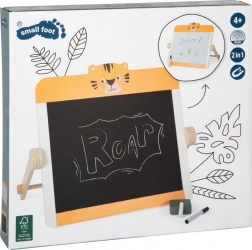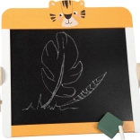 Diese Tischtafel 2-in-1 kombiniert eine Kreideseite und eine weiße magnetische, trocken abwischbare Tafel in einem kompakten Format. Dank des klappbaren Ständers lässt sie sich leicht auf dem Tisch aufstellen und nach dem Spielen platzsparend verstauen. Das niedliche Safari-Tiger-Motiv regt die Fantasie an und inspiriert zu Schulspielen und selbstständigem Lernen.
