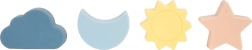 Vier Teile in Form von Sonne, Mond, Stern und Wölkchen fördern die Entwicklung der Feinmotorik, die Koordination und die sensorische Wahrnehmung.