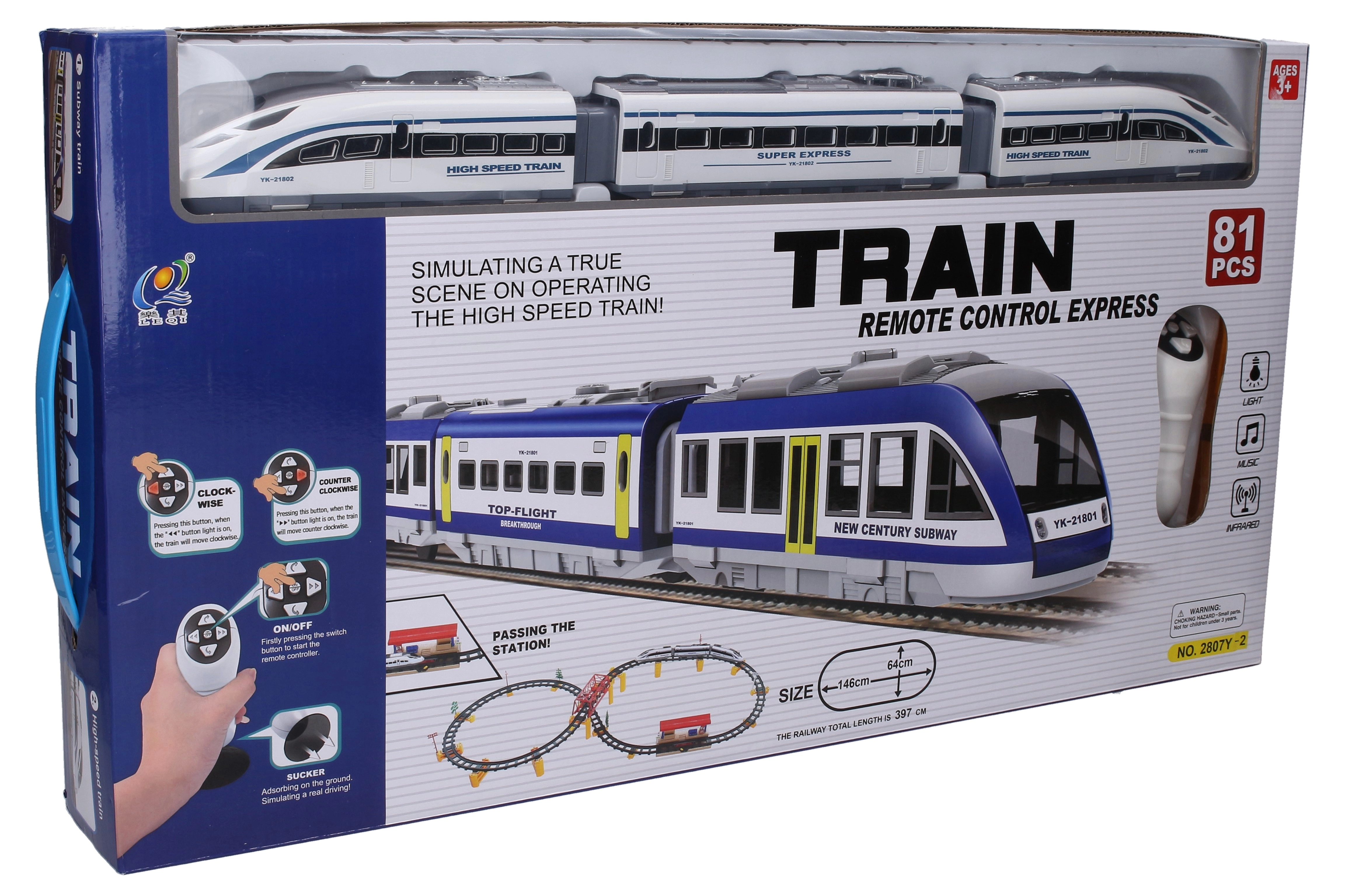 Dieses detailreich gestaltete RC-Zug-Set bringt eine realistische Fahrt mit einfacher Bedienung. Dank der Licht- und Soundeffekte genießen Kinder ein dynamisches Spielerlebnis, während die magnetische Verbindung der Waggons eine schnelle und sichere Montage gewährleistet. Die Strecke mit Grundfläche von 146 × 64 cm und einer Gesamtlänge von 397 cm bietet reichlich Platz für actionreiche Fahrten.