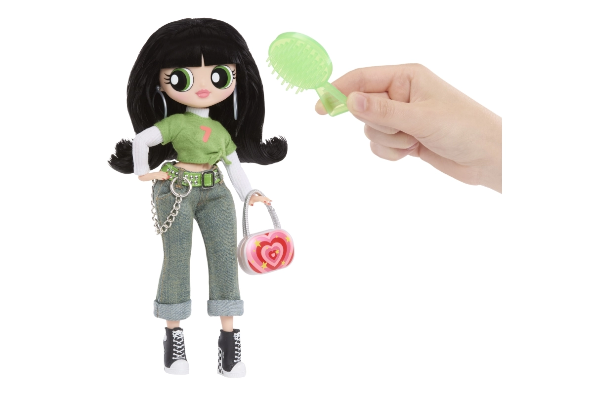 Die ikonische Buttercup gesellt sich zu den L.O.L. OMG Großen Schwestern in ihrem markanten grünen Stil, inspiriert von der Serie Powerpuff Girls. Dank der Gelenke ist die Puppe komfortabel positionierbar und lässt sich auf dem beiliegenden Ständer leicht präsentieren. Die langen Haare kannst du mit der Bürste kämmen und stylen, während das detaillierte Outfit mit Accessoires dem Spiel eine neue Dimension verleiht.