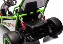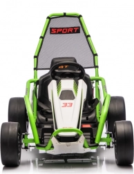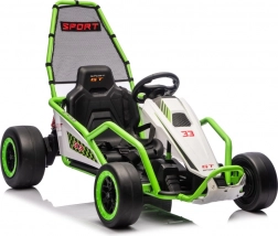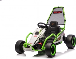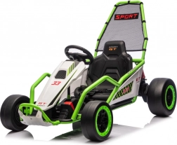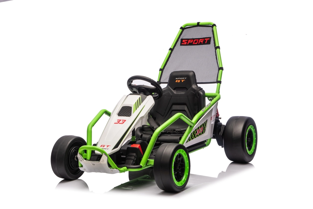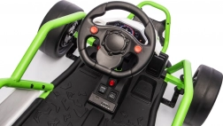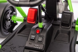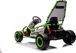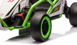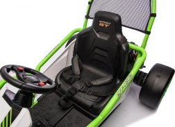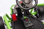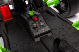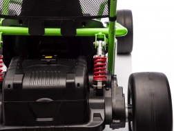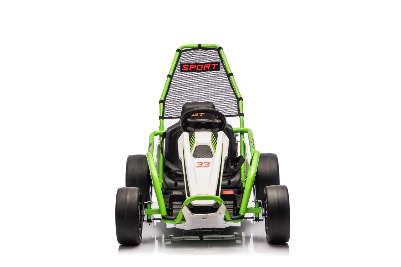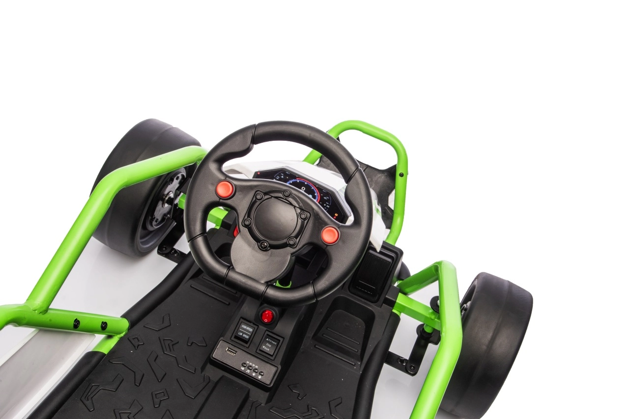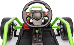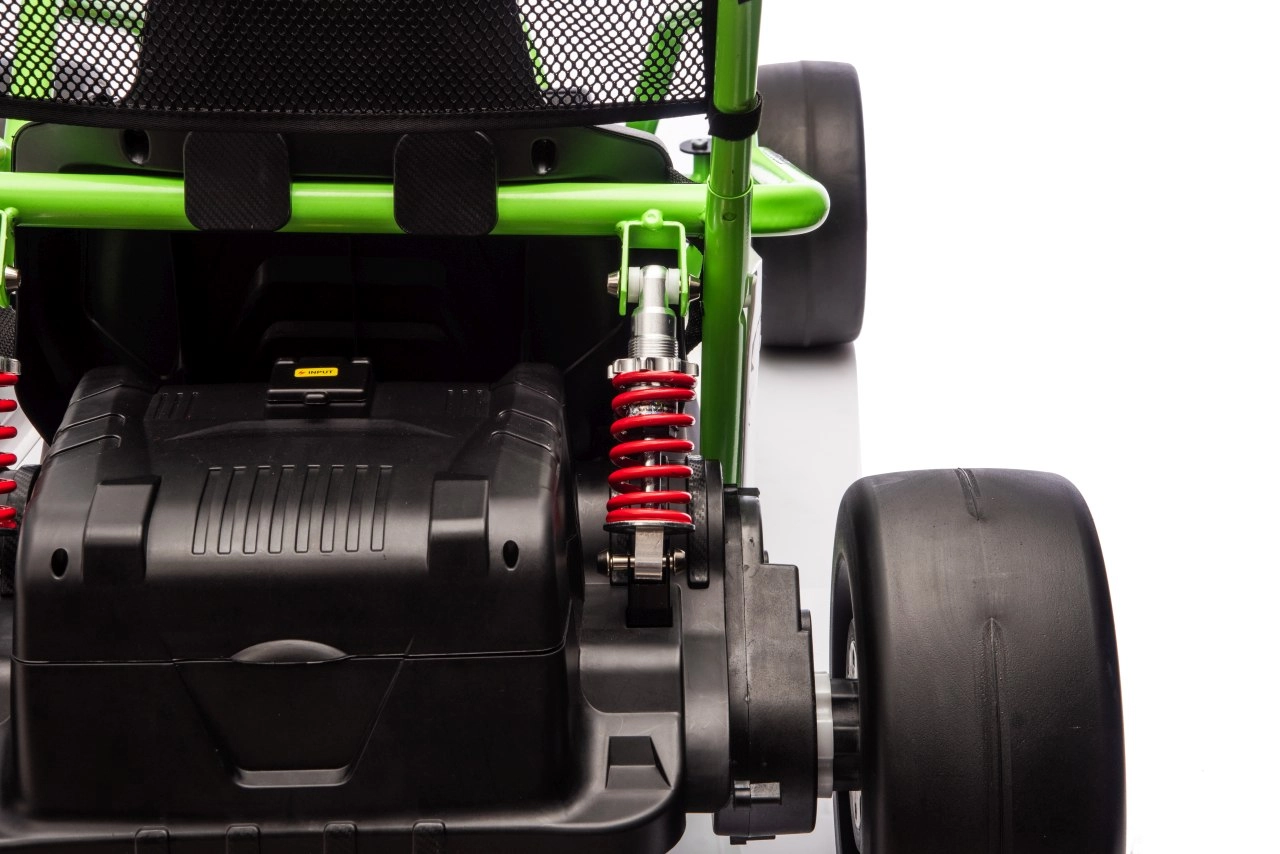 Das Gokart TORNADO ist die ideale Wahl für kleine Rennfahrer, die Action lieben. Das Duo aus kräftigen 2×150-W-Motoren, betrieben mit einem 24-V-(7-Ah-)Akku, sorgt für gleichmäßige Kraftentfaltung, zwei wählbare Geschwindigkeiten und eine einfache Steuerung vorwärts/rückwärts. Vordere, gedämpfte EVA-Räder garantieren Grip und leisen Lauf, während spezielle hintere Kunststoffräder leichtes Driften auf geeignetem Untergrund ermöglichen.