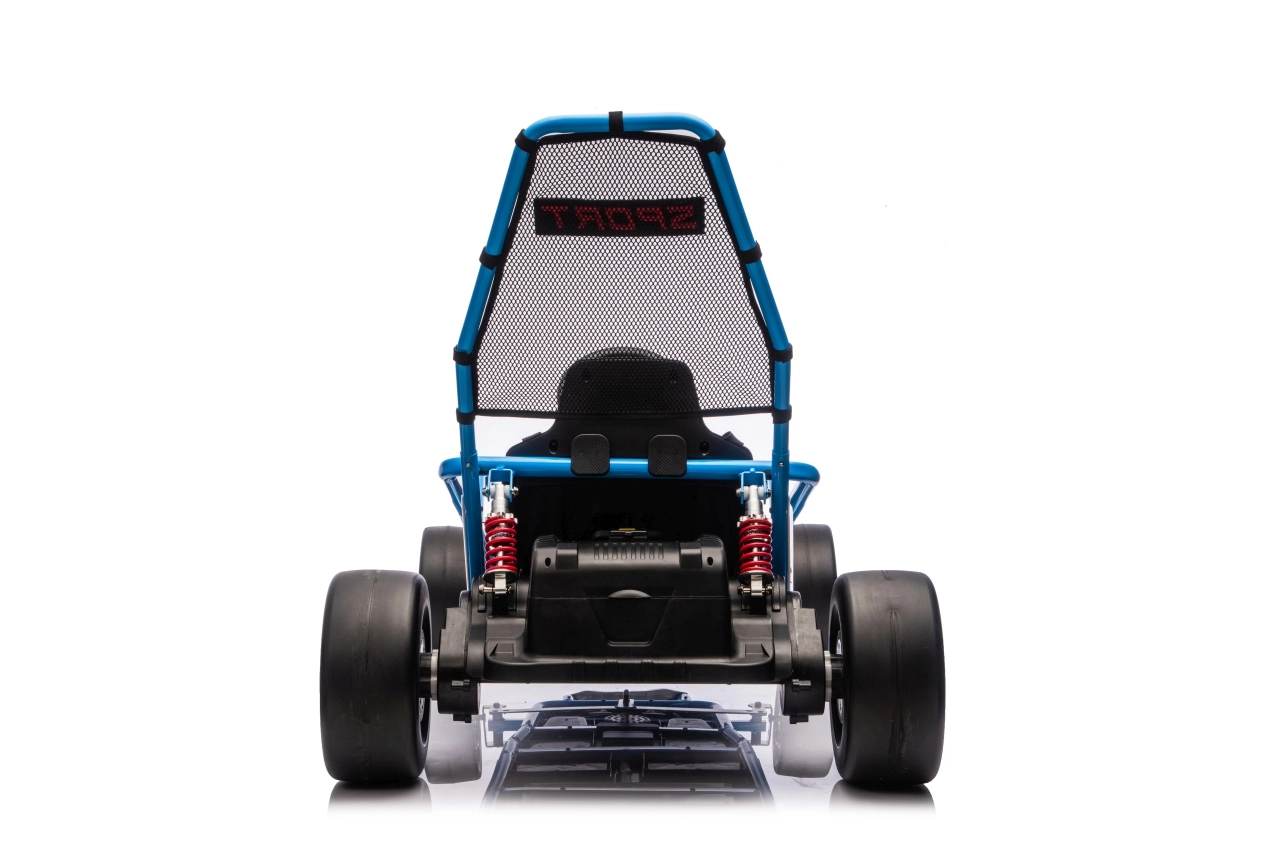 Das Gokart TORNADO ist die ideale Wahl für kleine Rennfahrer, die den Adrenalin-Kick des Driftens und zugleich komfortables Fahren erleben möchten. Vordere EVA-Schaumräder (21×9 cm) bieten hervorragende Bodenhaftung, während die hinteren Kunststoffräder (25×12 cm) für einfaches Driften konzipiert sind. Dank sanftem Start, 2 Geschwindigkeitsstufen und Fahrt vorwärts/rückwärts lernen Kinder sicher und souverän zu steuern.