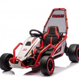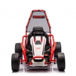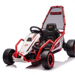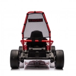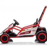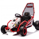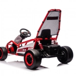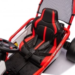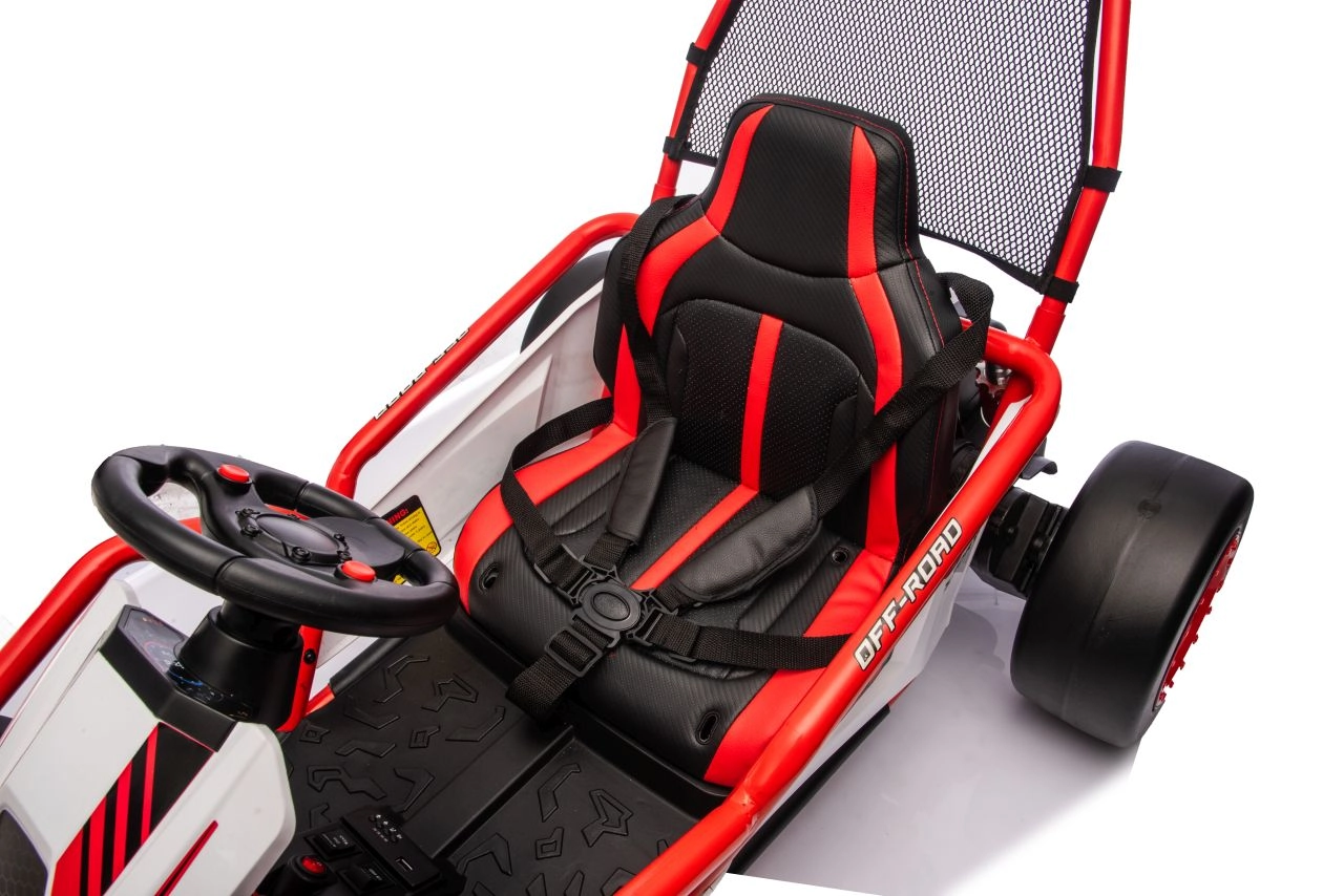Die robuste Konstruktion mit zwei hinten verstellbaren Stoßdämpfern erhöht den Komfort und die Kontrolle auf ebenen Flächen. Die umfangreiche Ausstattung umfasst ein Audio-Panel mit MP3, USB und Bluetooth, integrierte Melodien, Hupe und Batteriestatusanzeige. Der Sportsitz mit Gurten hält den Fahrer sicher im Sitz.