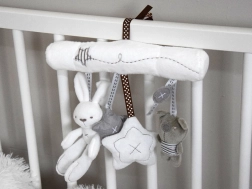 • Universelle Befestigung – praktische Bänder für Kinderwagen und Bettchen.