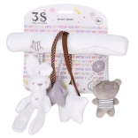 Eine kurze Melodie beim Drücken des Häschens, eine Quietsche im weißen Stern und eine Rassel im Bären stimulieren sanft das Gehör und fördern das Verständnis von Ursache und Wirkung.