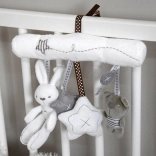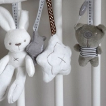 Dieses weiche Hängespielzeug verbindet ein beruhigendes Design in Weiß-Grau-Tönen mit funktionaler Sinnesstimulation. Dank der universellen Bänder befestigen Sie es im Handumdrehen am Bettchen, Kinderwagen oder an der Spielbogenstange und bieten dem Baby anregenden Spielspaß beim Ausruhen und unterwegs.