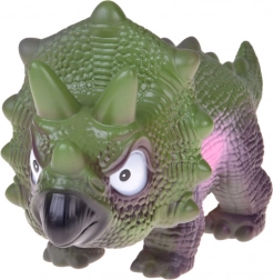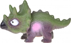 Der interaktive Gummi-Triceratops ist das ideale Spielzeug für kleine Fans der prähistorischen Welt. Dank der texturierten, hautähnlichen Oberfläche, des markanten Nackenschilds mit Stacheln und des robusten Körpers wirkt er sehr realistisch und fördert kreatives, fantasievolles Spielen.