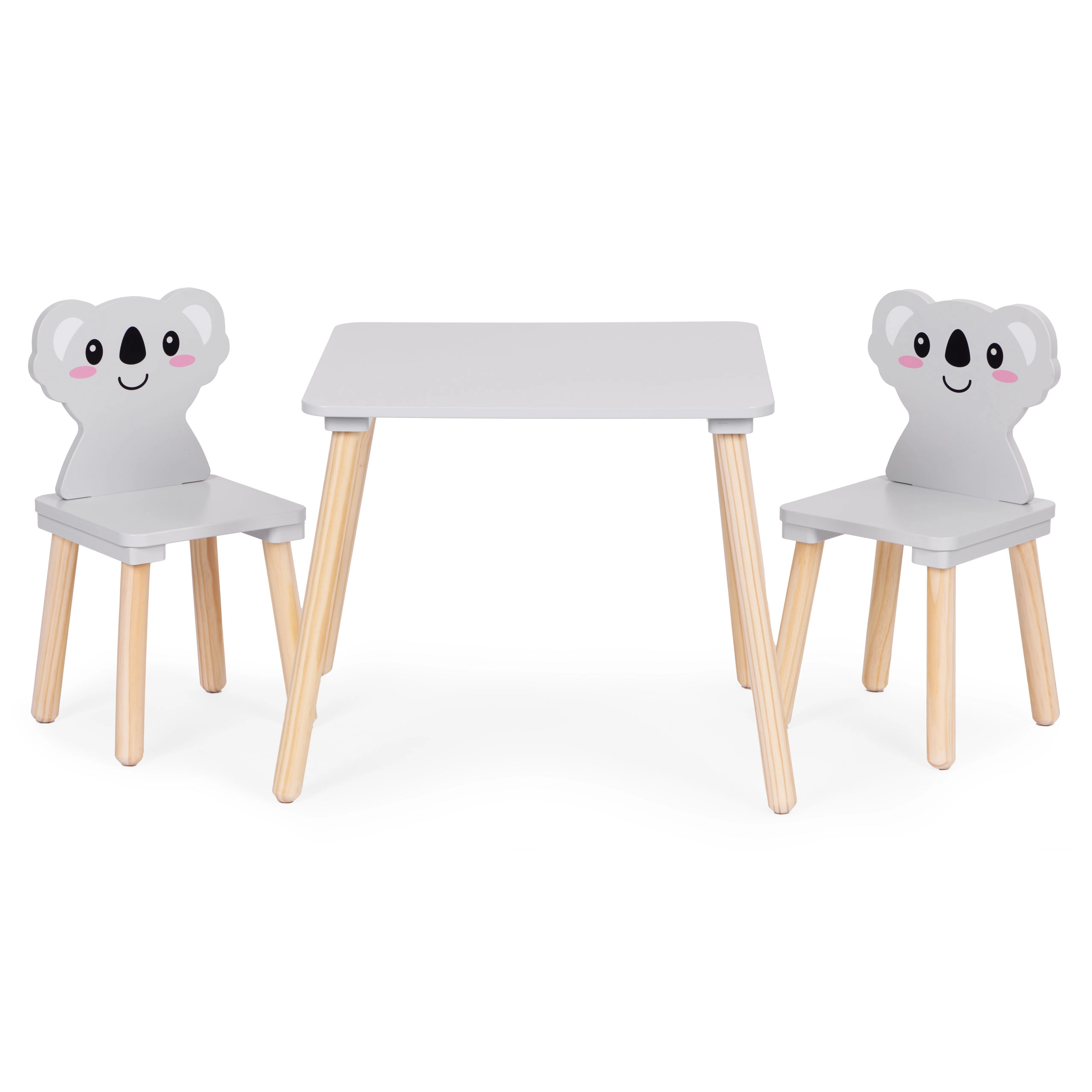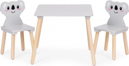 Das ECOTOYS-Möbelset verwandelt das Kinderzimmer in eine kreative Spielzone. Die breite Tischplatte bietet viel Platz zum Malen, Bauen und Basteln und ist pflegeleicht. Zwei Stühle mit Koala-Rückenlehnen begeistern Kinder mit einer verspielten Optik und unterstützen zugleich eine korrekte Sitzhaltung.