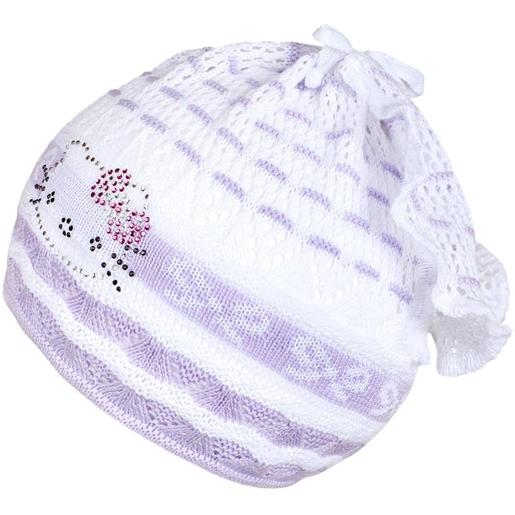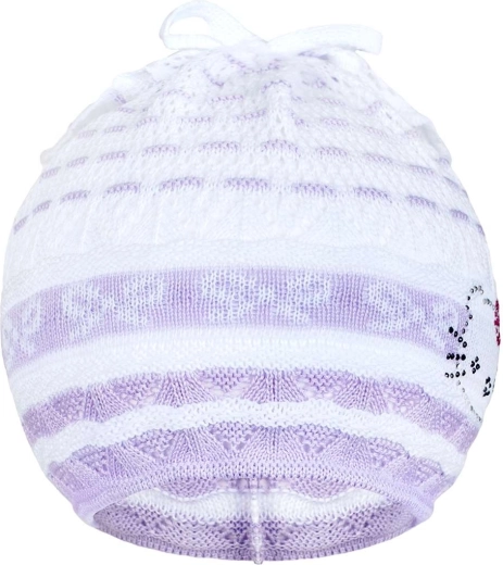 Diese stylische gestrickte Mütze–Tuch NEW BABY in zartem Lila schützt den Kinderkopf vor Wind und kühlerem Frühlingswetter. Dank des natürlichen Materials ist sie atmungsaktiv, weich und angenehm zur Haut. Das Kätzchen-Design mit glitzernden Steinchen verleiht dem Outfit einen verspielten Look.