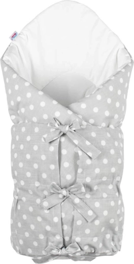 Die New Baby Wickeldecke im klassischen Schnürdesign kehrt als bewährte Wahl für die ersten Lebensmonate zurück. Dank drei Reihen Bänder umhüllt sie das Baby fest und komfortabel, was ein Sicherheitsgefühl vermittelt und ruhigen Schlaf fördert. Der weiche Baumwollbezug ist sanft zu empfindlicher Haut und das graue Punktedesign lässt sich leicht mit der Erstausstattung kombinieren.