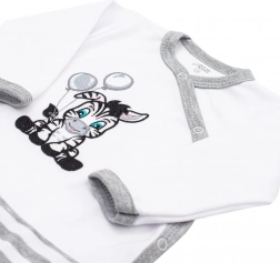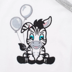 Das niedliche Zebra-Motiv ist mit Stoff unterfüttert, damit die Stickerei die empfindliche Babyhaut nicht reizt. Der untere Teil mit Streifenprint verleiht dem Overall einen verspielten Look und dank des Schnitts bleibt der Rücken stets bedeckt, auch bei aktiver Bewegung.
