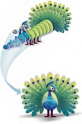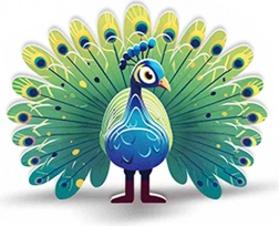 Nach dem Zusammenbau entsteht eine farbenfrohe Pfauenfigur, die Kindern viel Freude an ihrem selbst geschaffenen Werk bereitet.